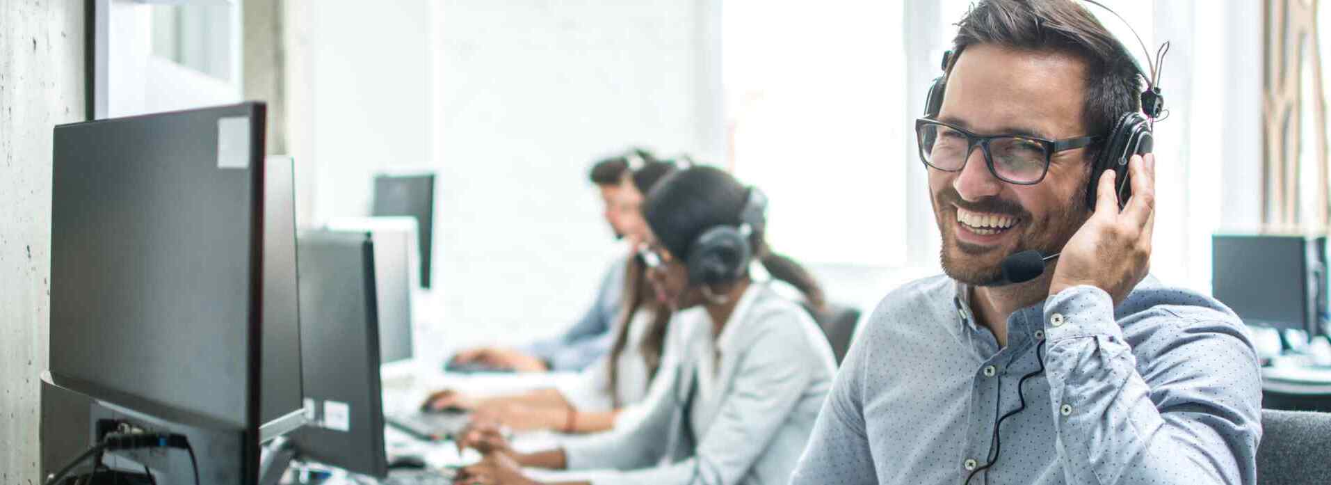 Smiling handsome customer support operator with headset working in call center. Published November 29, 2021 at 1914 × 697 in Smiling handsome customer support operator with headset working in call center. Smiling handsome customer support operator with headset working in call center. ← Previous Next →